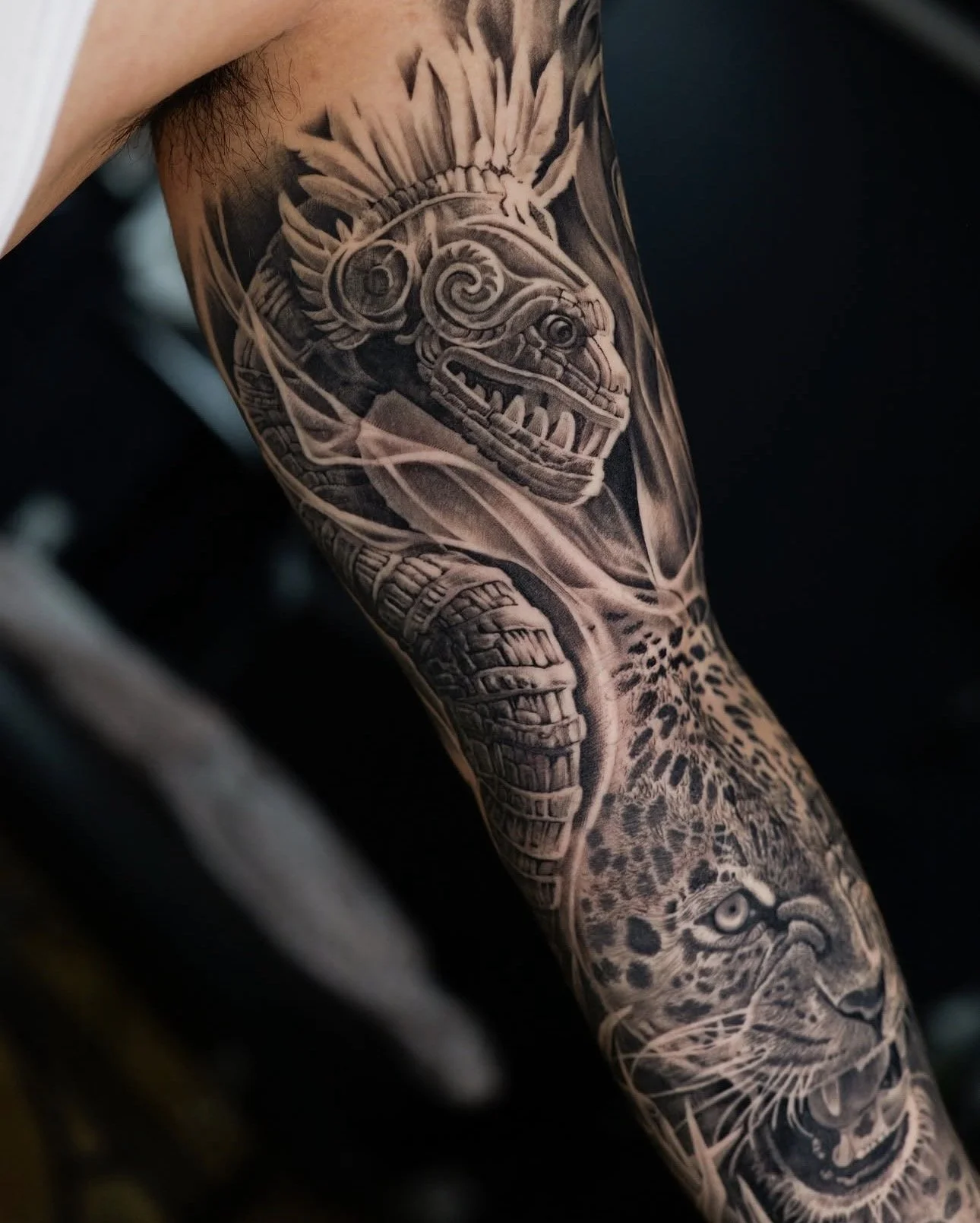 With a background in pencil drawing and portraiture, Ezzy draws a lot of inspiration from Renaissance art and architecture, influences that guide his approach to realism and composition. Today, he gravitates toward larger, cohesive designs that flow naturally with the body, aiming to create balanced, high-contrast pieces with intention and clarity.